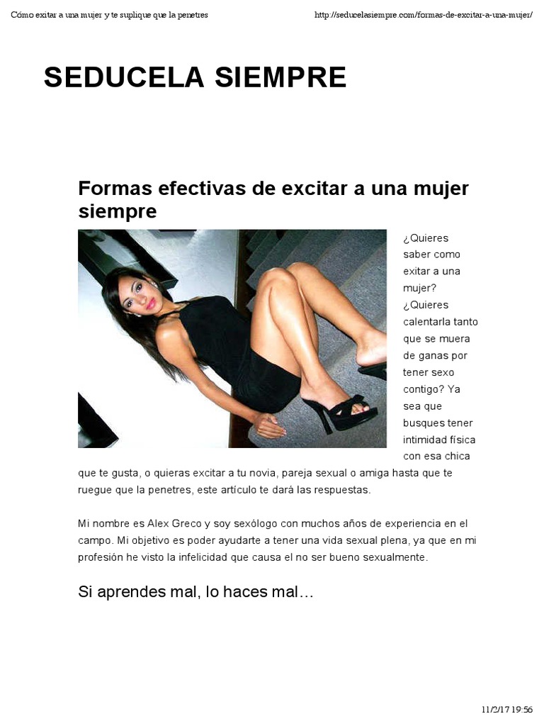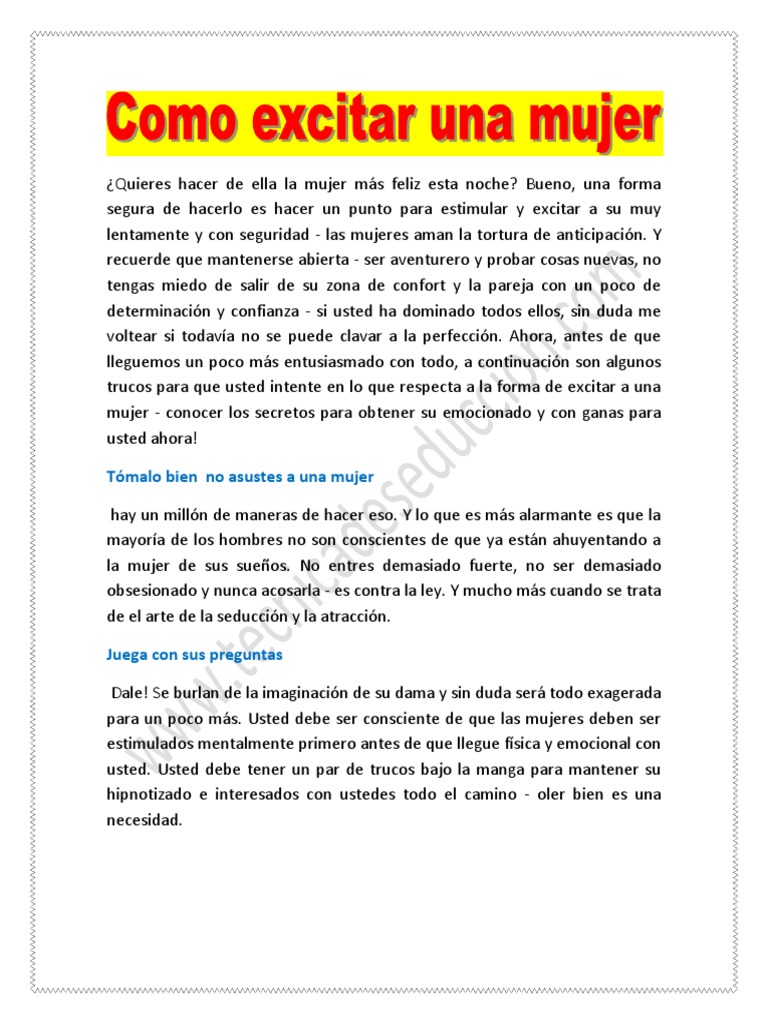 Y servir como una excusa para saber más acerca del lado íntimo o sexual de tu pareja de un amigo o amiga o de alguien que te gusta y no conoces bien aún. Prueba para tu nick algo ingenioso como algún curioso juego de palabras que te haga parecer creativo o como el nombre de un interesante personaje de ficción. Asegúrese ella se da cuenta de cada. El punto g de la mujer - como besar a una mujer - exitar a una mujer. Ok ya aprendiste como excitar a una mujer y lo que tienes que hacer para no arruinar el precalentamiento. Tenemos un Regalo para ti. En poco tiempo veras grandes resultados.