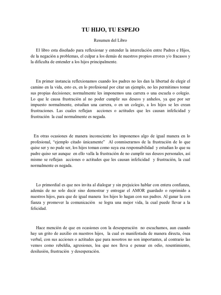 Tu Hijo Tu Espejo. Tu Hijo Tu Espejo.